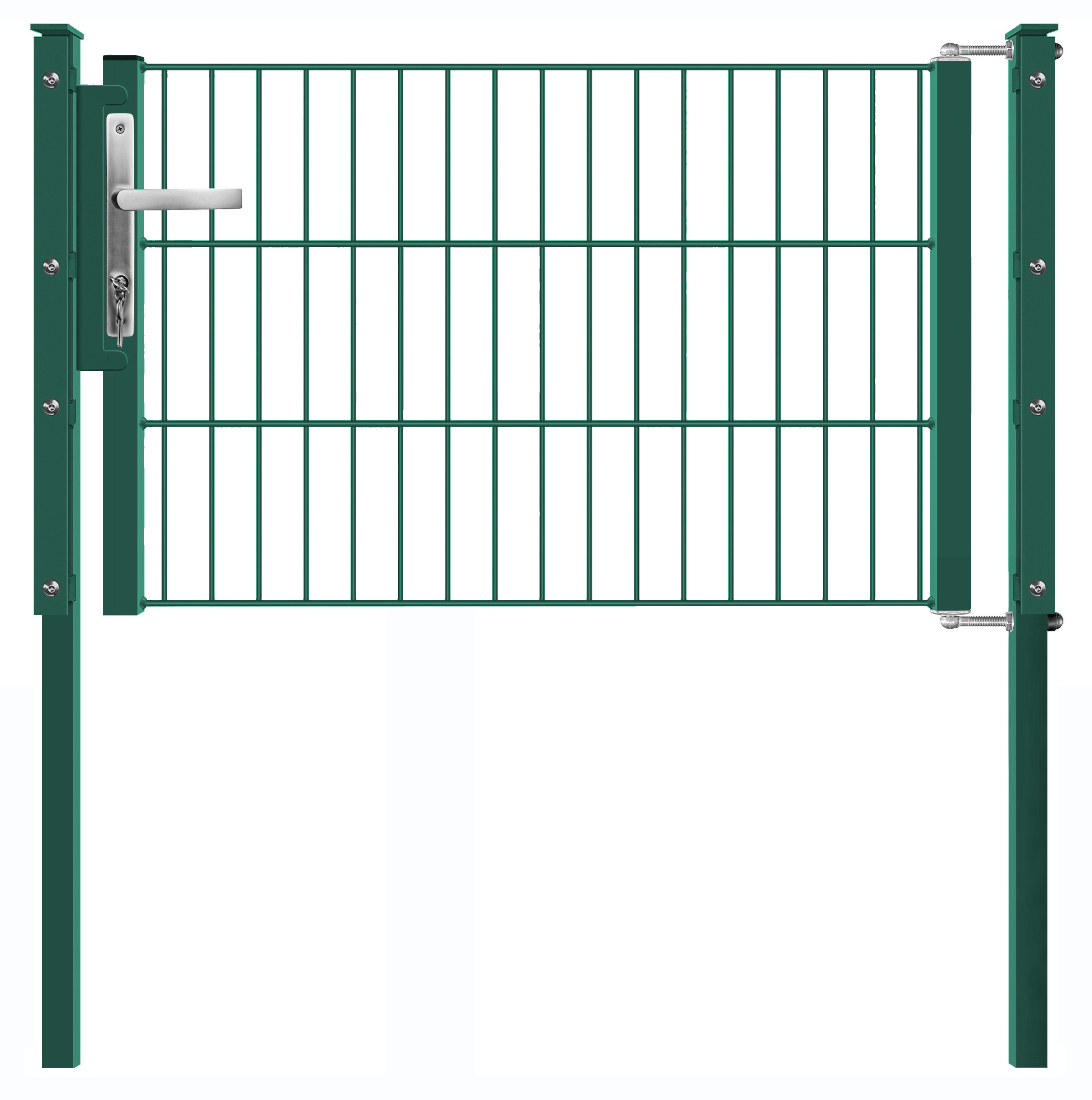 Lieferumpfang: Einsteckzylinderschloss*, ALU-Drückergarnitur mit Schild, verstellbare Torbänder, Öffnungsradius 90°
