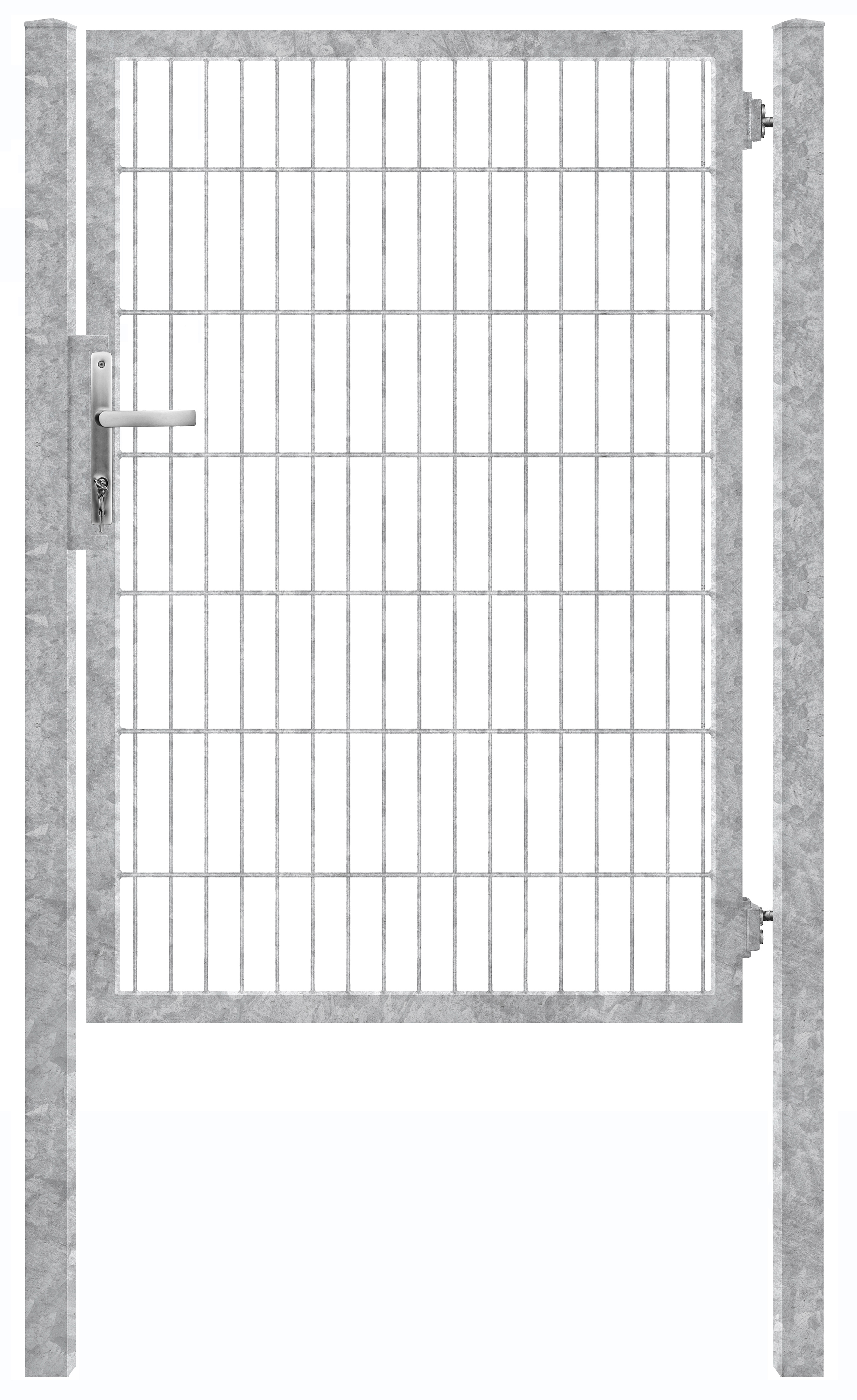 Lieferumpfang: Einsteckzylinderschloss*, ALU-Drückergarnitur mit Schild, verstellbare Torbänder, Öffnungsradius 180°