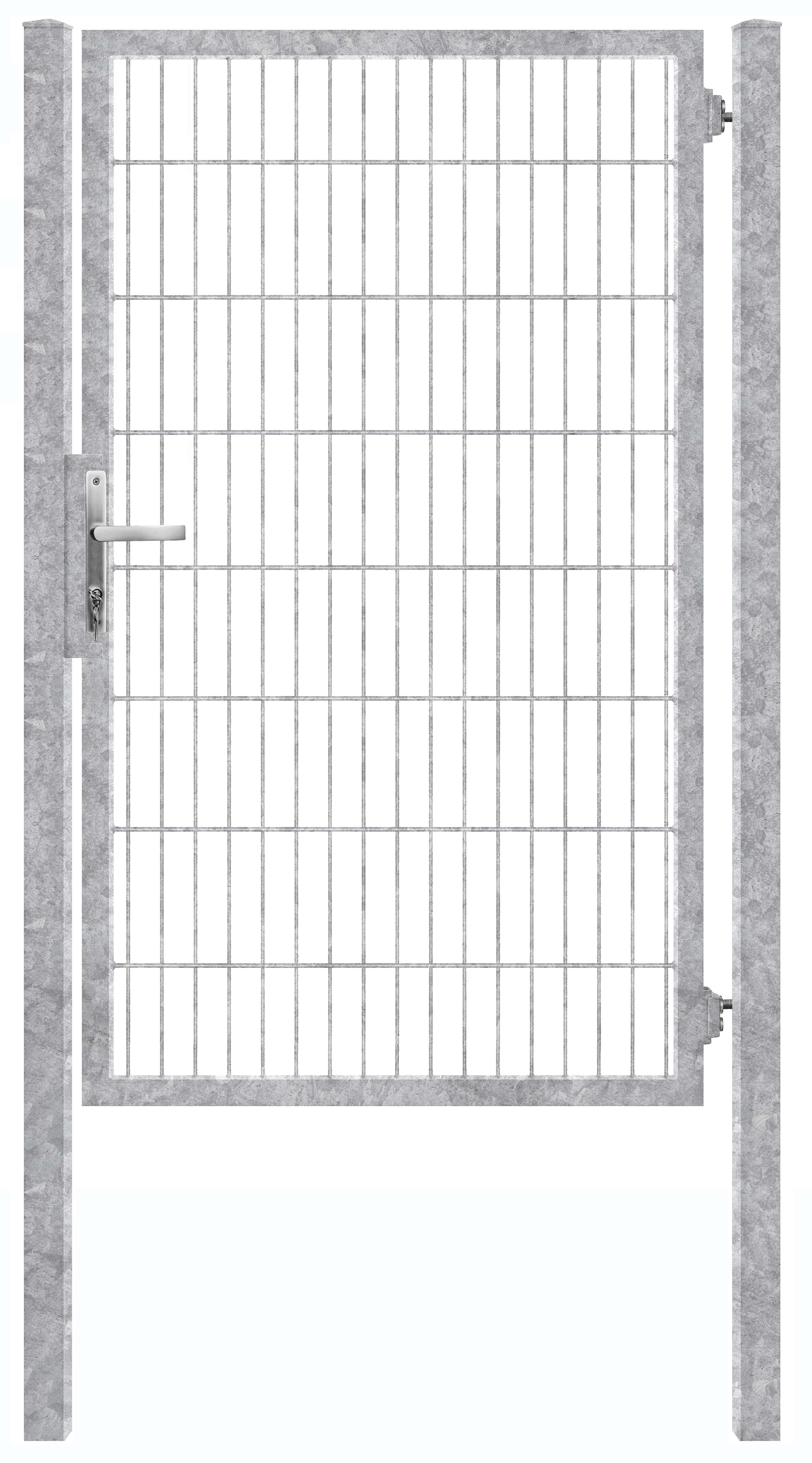 Lieferumpfang: Einsteckzylinderschloss*, ALU-Drückergarnitur mit Schild, verstellbare Torbänder, Öffnungsradius 180°
